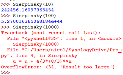 La taille de ces carrés est divisée par 4 à chaque étape. A l'étape 0 (pour passer à l'étape 1), on enlève des carrés de taille $\dfrac 1 3$,