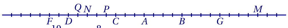 Placer sur cette droite les points $M$, $N$, $P$ et $Q$ définis par les relations: