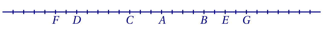 On donne sur la droite graduée ci-dessous les points $A$, $B$, $C$, $D$, $E$, $F$ et $G$.