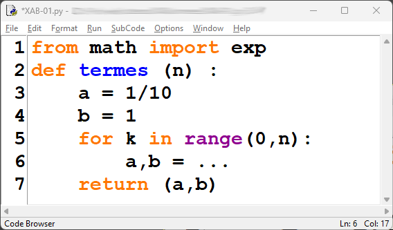 La ligne 6 peut s'écrire a,b = exp(-b),exp(-a).